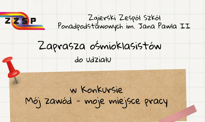 Organizatorem konkursu „Mój zawód- moje miejsce pracy” jest Zgierski Zespół Szkół Ponadpodstawowych im. Jana Pawła II w Zgierzu.