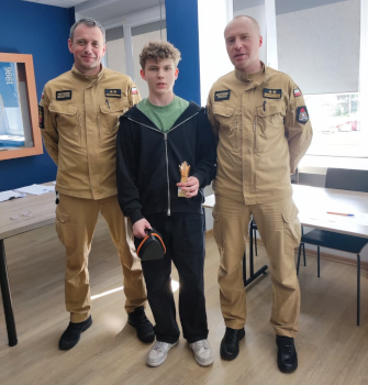 Ogólnopolski Turniej Wiedzy Pożarniczej “Młodzież zapobiega pożarom” to konkurs skierowany do młodych ludzi zainteresowanych bezpieczeństwem i ochroną przeciwpożarową. Etap gminny odbył się na terenie Jednostki Ratowniczo-Gaśniczej PSP w Zgierzu. Filip Górski, uczeń klasy 2TOF, zajął  III miejsce. Szkołę reprezentowali także Bartek Polasiński i Mateusz Pędzicki, obaj z klasy 1tf, pod opieką pani Elżbiety Dębowskiej. Gratulujemy i życzymy dalszych sukcesów!