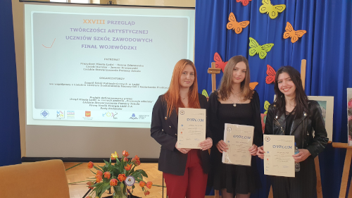 Nadia Dębowska z klasy 2 TOF otrzymała wyróżnienie w Przeglądzie Twórczości Artystycznej Uczniów Szkół Zawodowych województwa łódzkiego w kategorii twórczość fotograficzna. Nagrodzone zdjęcie nosi tytuł “Promyk nadziei.” Uroczyste podsumowanie konkursu odbyło się podczas gali finałowej w Zespole Szkół Politechnicznych im. Komisji Edukacji Narodowej w Łodzi, który jest organizatorem Przeglądu .  W konkursie, w kategorii plastycznej, brały również udział: Julia Błońska