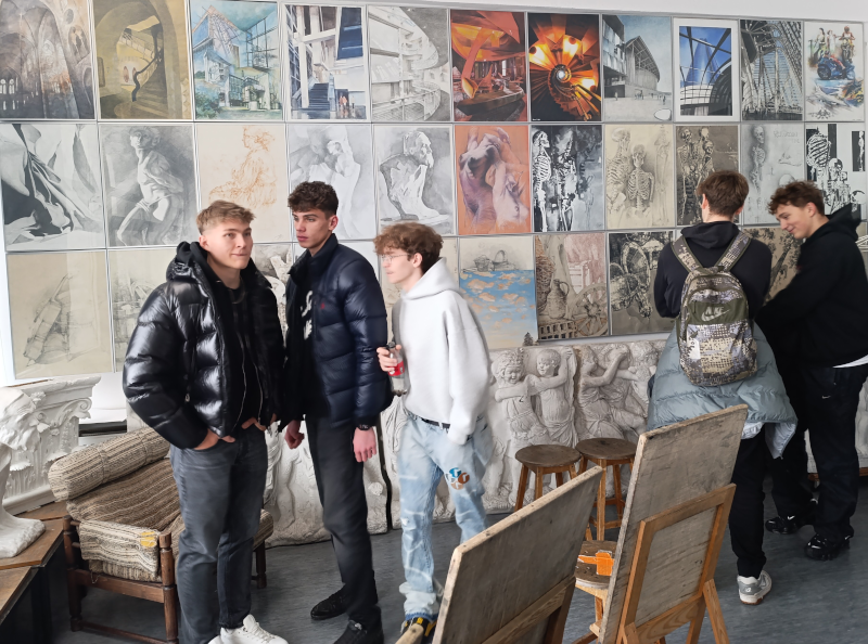 W czasie wyjazdu nie zabrakło momentów integracji, rozmów i wspólnego odkrywania akademickiej przestrzeni. Przesłane zdjęcie przedstawia uczniów w trakcie zwiedzania, w otoczeniu tętniącej życiem przestrzeni miejskiej – stanowiącej część trasy między wydziałami uczelni.