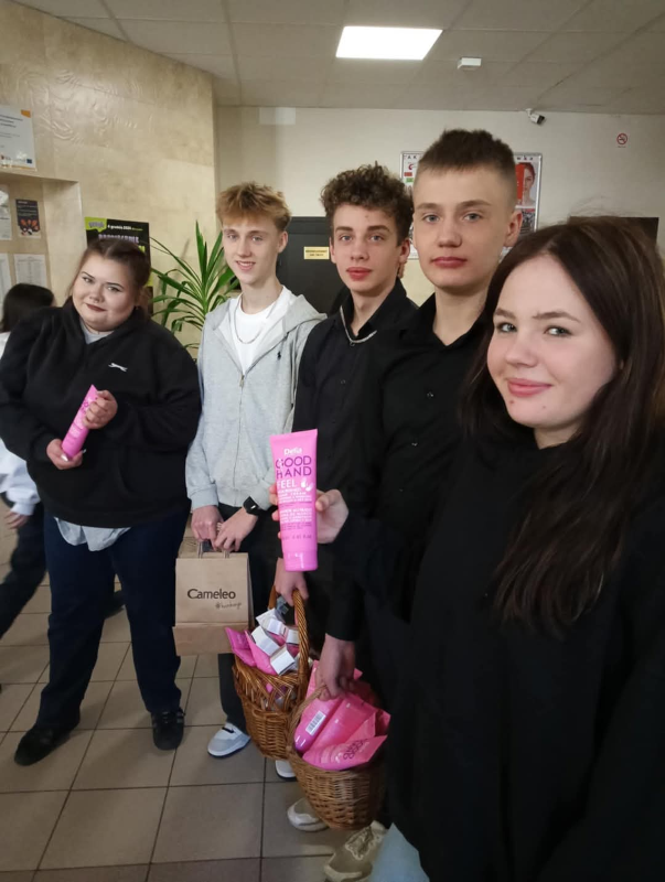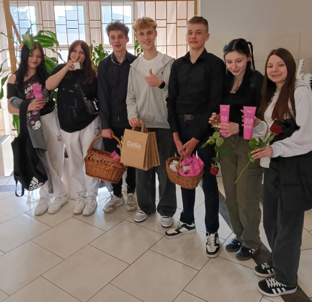 Dzień Kobiet świętowaliśmy w naszej szkole już w piątek . Panowie zadbali o piękne upominki, które przygotowała firma patronacka Uni-Fryz Hurtownia Fryzjersko-Kosmetyczna oraz zaprzyjaźniona z naszą szkołą Delia Cosmetics.