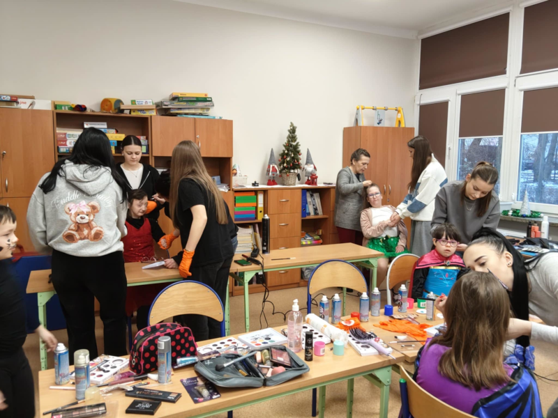 W ramach akcji ,,Dzieci – Dzieciom”, nasze zdolne uczennice z trzeciej klasy fryzjerskiej wraz z panią Małgorzatą Oleszczak miały niezwykłą okazję odwiedzić Specjalny Ośrodek Szkolno-Wychowawczy w Zgierzu przy ulicy Parzęczewskiej. Bal Karnawałowy, to dla każdego dziecka czas wyjątkowy, dlatego nasze przyszłe stylistki zadbały o to, by uczestnicy poczuli się jak prawdziwe gwiazdy. Dzięki profesjonalnemu czesaniu i kolorowym makijażom, sala wypełniła się księżniczkami, super bohaterami i bajkowymi postaciami “Superman” i nie tylko. Jesteśmy dumni z naszych uczennic, które pokazały nie tylko wysokie umiejętności zawodowe, ale przede wszystkim wielkie serce i empatię. Nic tak nie cieszy, jak szczery uśmiech drugiego człowieka.