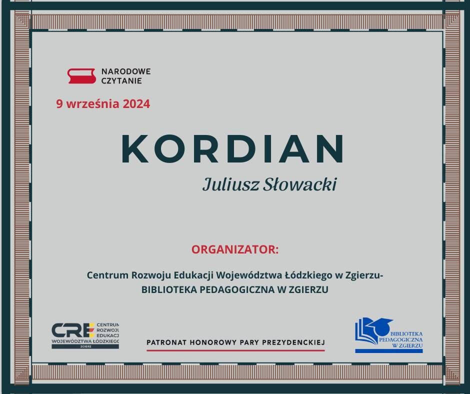 W tym roku bohaterem tego wydarzenia stał się dramat romantyczny „Kordian” Juliusza Słowackiego, który ukazał się sto dziewięćdziesiąt lat temu. Jest to arcydzieło polskiego romantyzmu.
