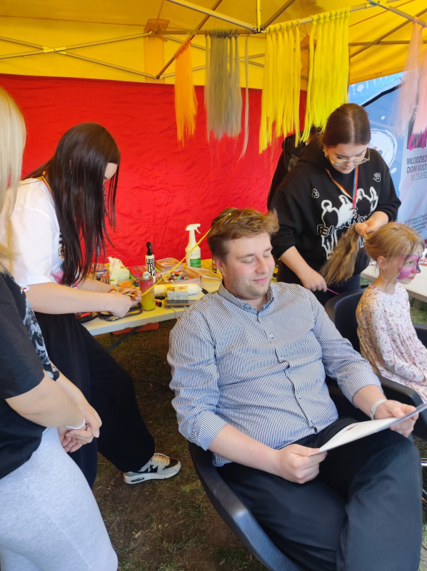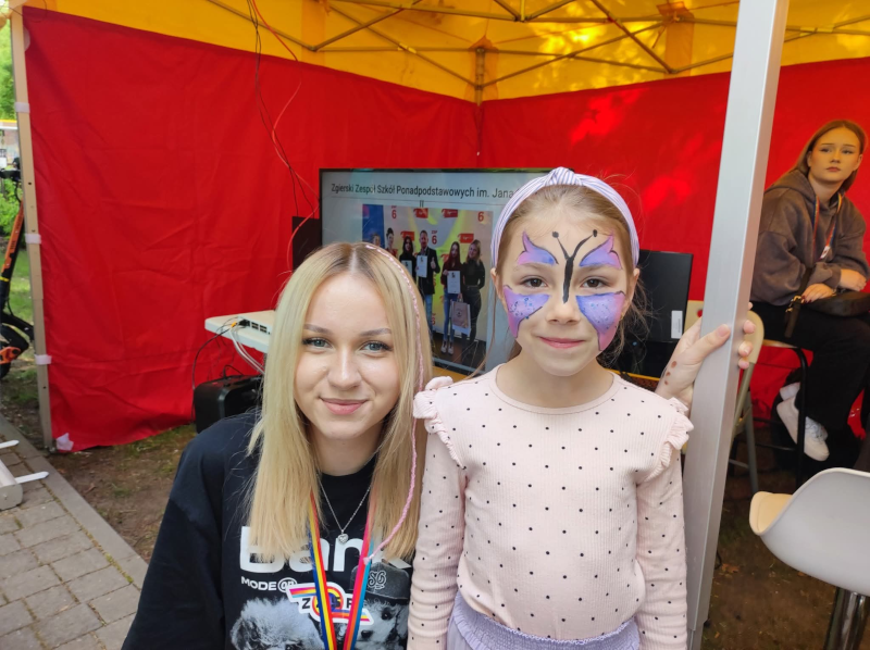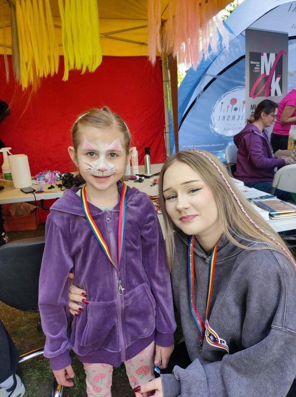 Uczennice technikum usług fryzjerskich wykonywały fryzury, kolorowe warkoczyki i makijaże, a najmłodsi z radością ustawiali się w kolejce po malowanie twarzy.