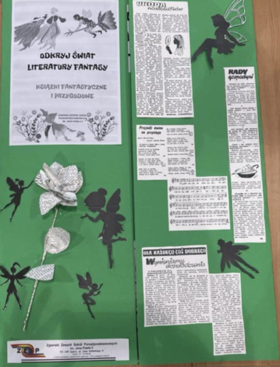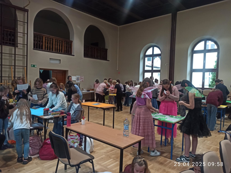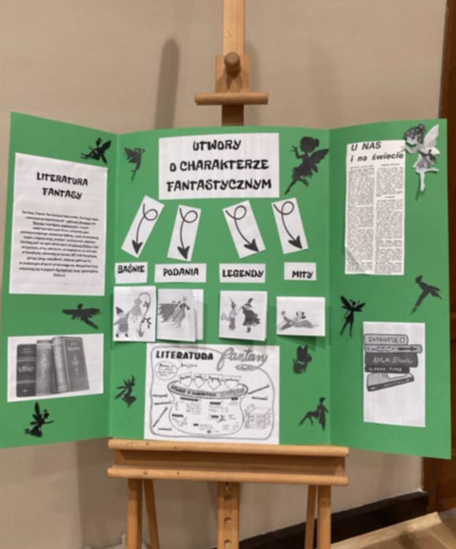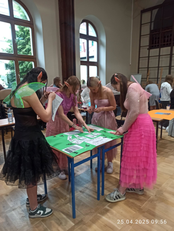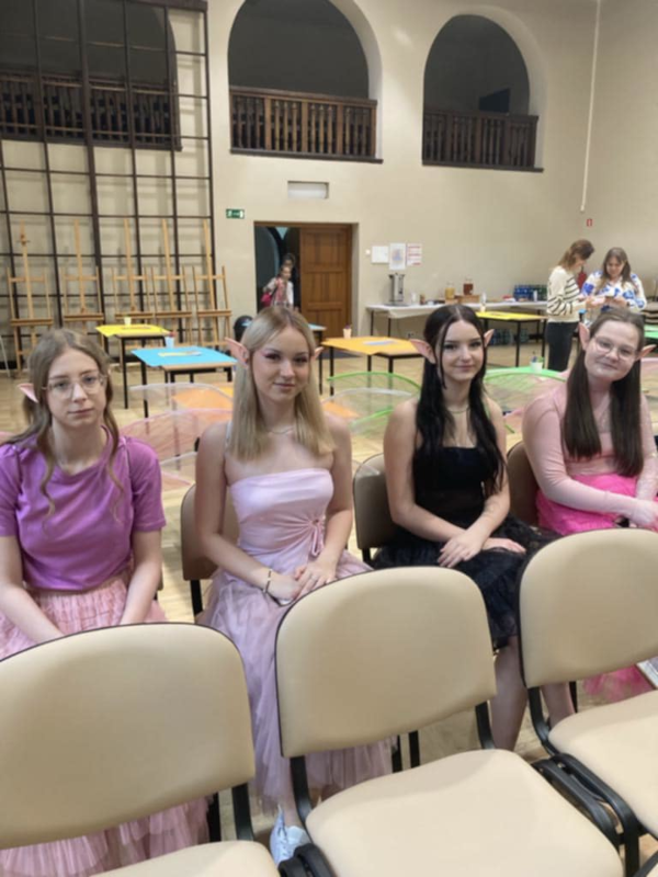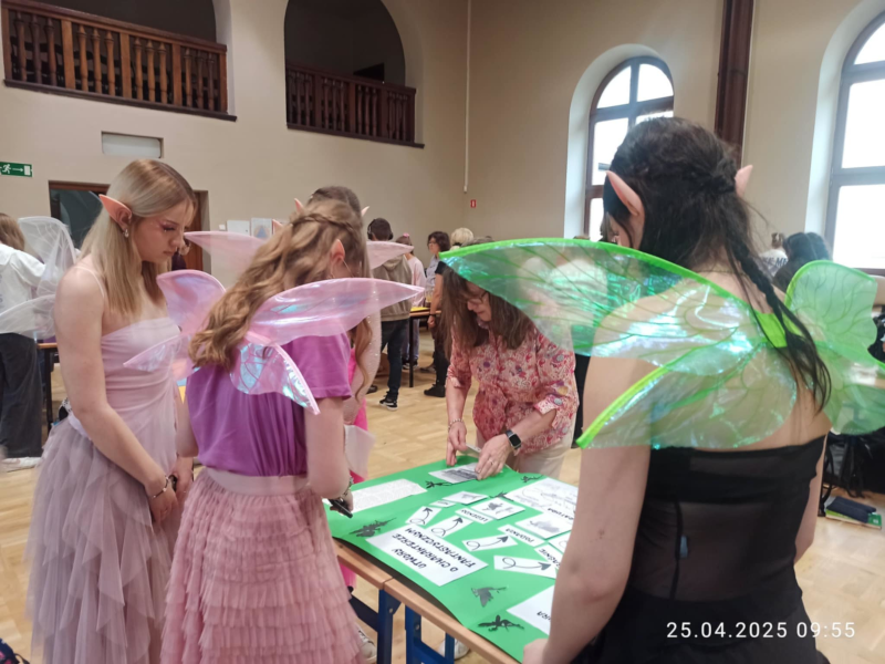 Naszą szkołę reprezentowały uczennice z klasy 2 TOF, które przygotowały wyjątkowy lapbook poświęcony literaturze fantasy. Ich praca zachwyciła zarówno treścią, jak i oprawą wizualną – dziewczęta wcieliły się w postacie elfów, prezentując swój projekt w pięknych, dopracowanych kostiumach. Dzięki starannej stylizacji prezentacja przeniosła widzów w fantastyczny świat literatury.
