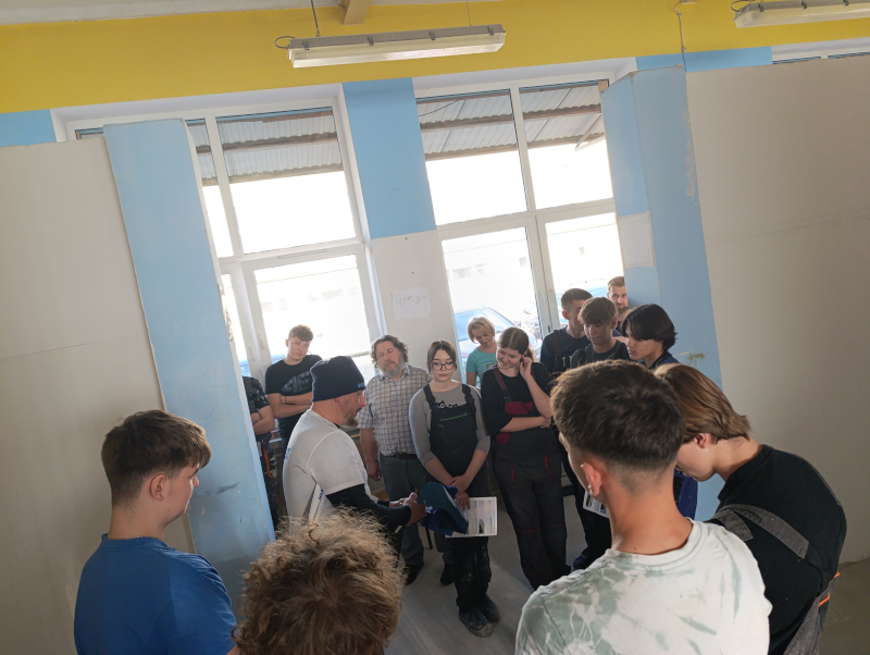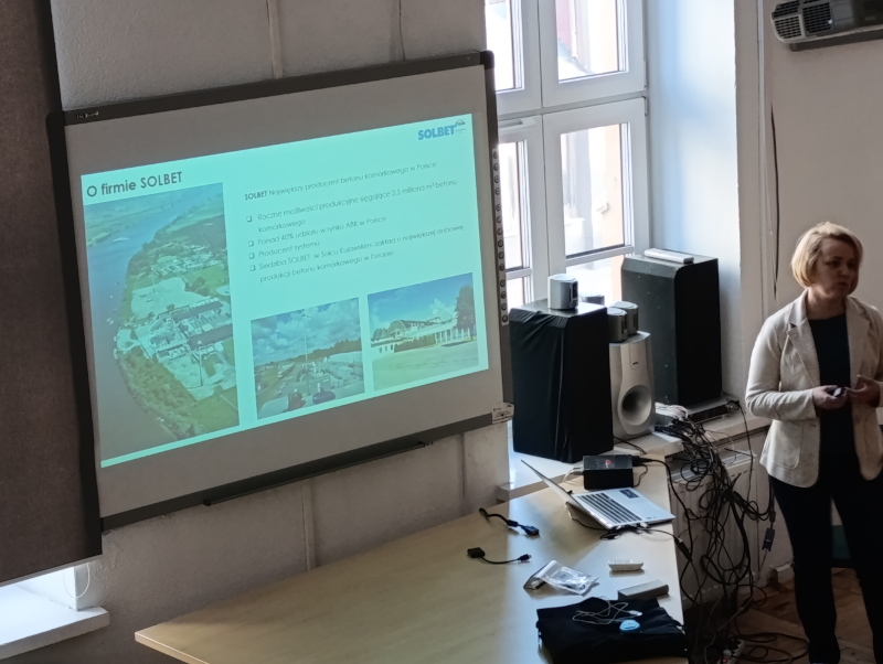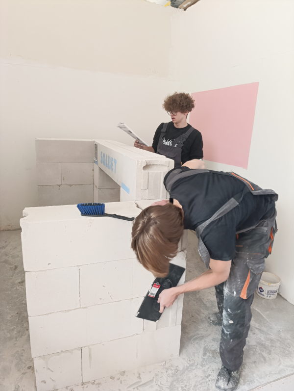 W środę 6.11.2024r. w naszej szkole odbyły się zajęcia prowadzone przez przedstawicieli firmy SOLBET – producenta systemu pustaków z betonu komórkowego. W szkoleniu uczestniczyli uczniowie z trzech klas budowlanych, którzy mieli okazję poszerzyć swoją wiedzę na temat nowoczesnych materiałów budowlanych. Po części teoretycznej przeprowadzono ćwiczenia praktyczne, które pozwoliły uczniom na bezpośrednią pracę z produktami firmy.