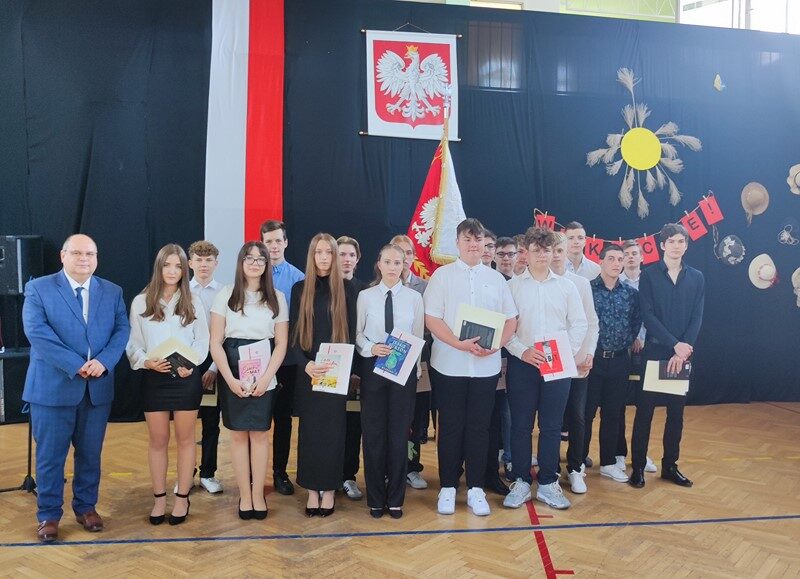 Uczniowie naszej szkoły w czasie uroczystego apelu odebrali świadectwa z wyróżnieniem, nagrody książkowe i rzeczowe za wzorowe zachowanie, bardzo dobre wyniki w nauce, za liczne osiągnięcia w konkursach oraz zaangażowanie w wolontariat i pracę na rzecz szkoły.