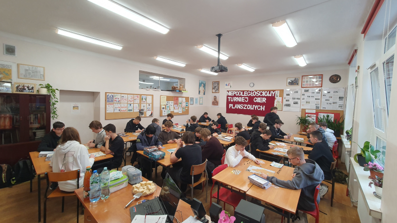Już po raz piąty w naszej szkole odbył się Niepodległościowy Turniej Gier Planszowych, w którym wzięło udział 30 uczniów z klas od pierwszej do piątej. Rozgrywki przeprowadzono w ramach serii Gwiaździsta Eskadra, obejmującej gry: 303 – Bitwa o Anglię, 111 – Alarm dla Warszawy, 7 – Obrona Lwowa, a także ORP „Orzeł” oraz Bitwa Warszawska. Wszystkie tytuły zostały wydane przez Instytut Pamięci Narodowej.