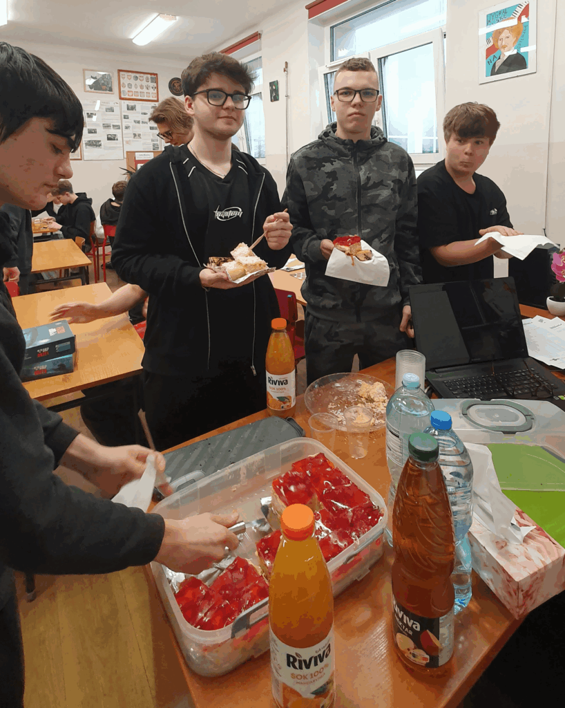 Podczas krótkich przerw był czas na rozmowy oraz słodki poczęstunek przygotowany przez opiekuna Niepodległościowego Turnieju Gier Planszowych, panią Beatę Rybarczyk.
