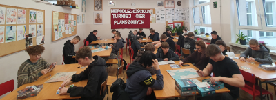 Już po raz piąty w naszej szkole odbył się Niepodległościowy Turniej Gier Planszowych, w którym wzięło udział 30 uczniów z klas od pierwszej do piątej. Rozgrywki przeprowadzono w ramach serii Gwiaździsta Eskadra, obejmującej gry: 303 – Bitwa o Anglię, 111 – Alarm dla Warszawy, 7 – Obrona Lwowa, a także ORP „Orzeł” oraz Bitwa Warszawska. Wszystkie tytuły zostały wydane przez Instytut Pamięci Narodowej.