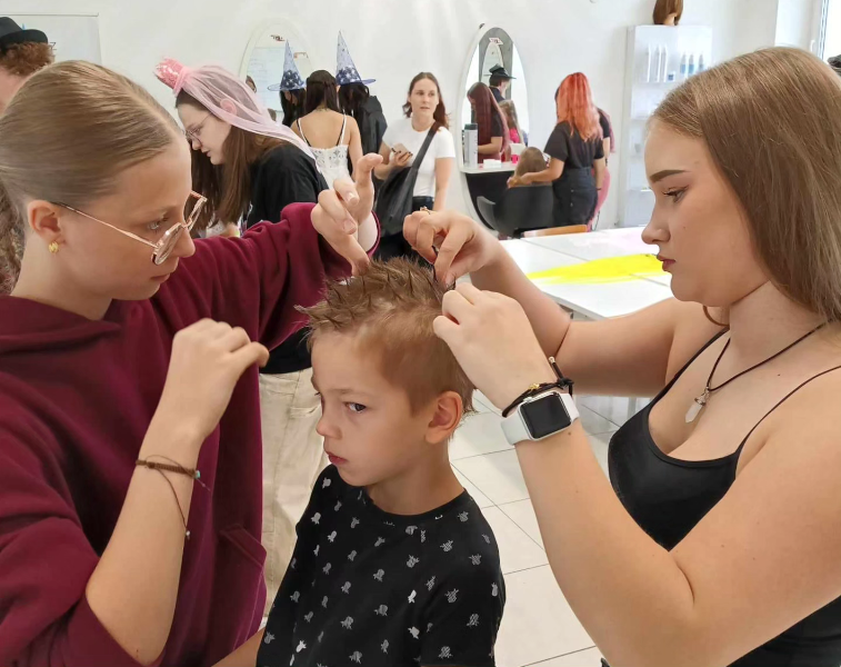 Z okazji Światowego Dnia Fryzjera, który przypadał 16 września, naszą szkołę odwiedziły dzieci z Oddziału Przedszkolnego przy Szkole Podstawowej nr 8 w Zgierzu. Celem warsztatów było pokazanie dzieciom, że wizyta w salonie fryzjerskim może być przyjemnością. Przedszkolaki bardzo chętnie poddawały się stylizacjom fryzur oraz makijażowi wykonanemu specjalnymi produktami przeznaczonymi do tego celu.