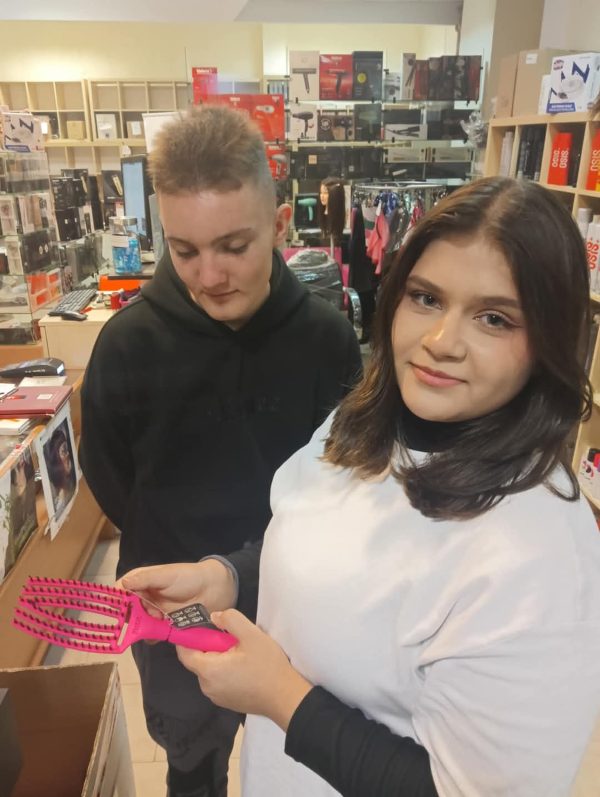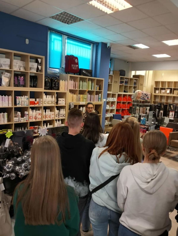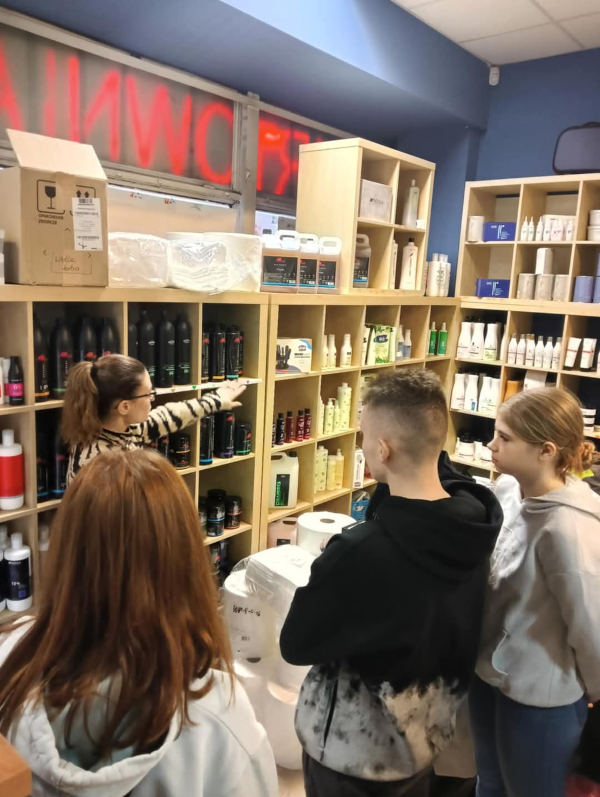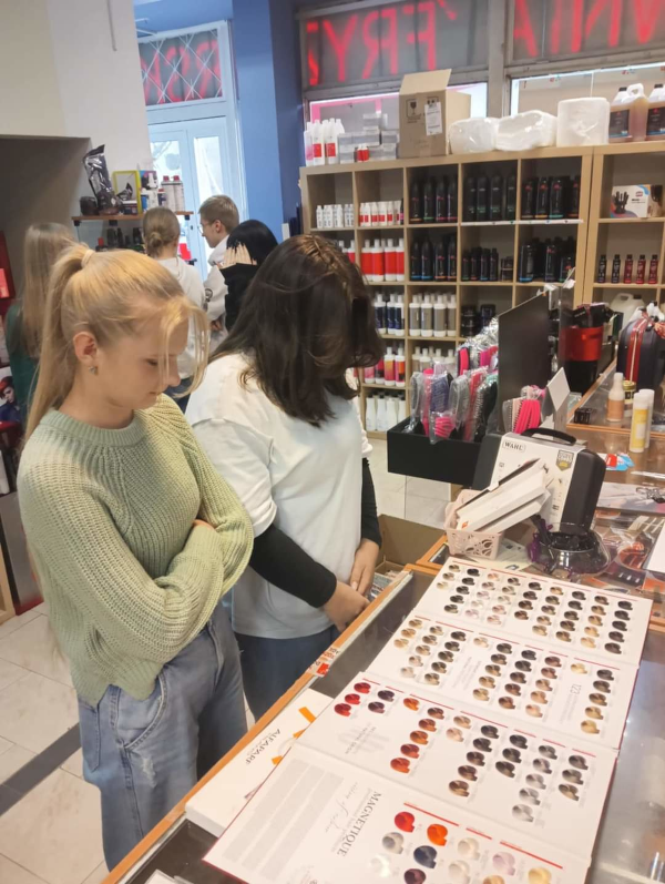 Uczniowie klasy 2tf, kształcący się w zawodzie fryzjer, mieli niezwykłą okazję odwiedzić naszą firmę patronacką, Uni-Fryz. W trakcie wizyty zapoznali się z najnowszymi trendami, produktami oraz akcesoriami w branży fryzjerskiej.