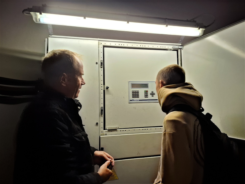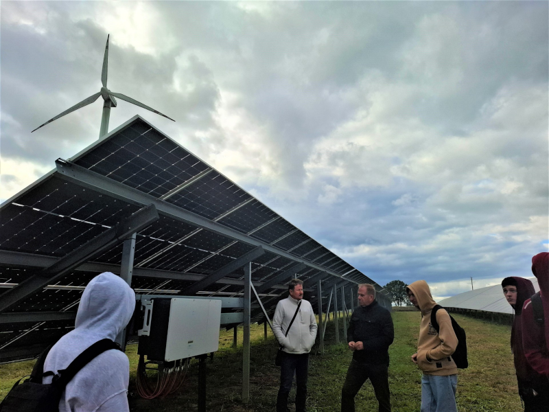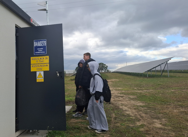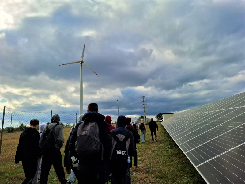 Przyszli technicy OZE mieli możliwość poznać i zobaczyć w praktyce mechanizmy pozyskiwania energii, wejść i zapoznać się z wyposażeniem wnętrza turbiny wiatrowej i z elementami rozległej, bo składającej się z kilkuset modułów farmy PV.